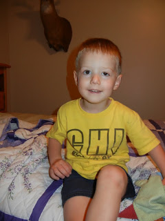 I cannot believe Preston turned 3 today! He got a little confused as to how old he actually is, b/c we had so many different "birthdays" for him - he kept saying he was 4 today b/c he was 3 yesterday! :) I guess we won't have 3 or 4 different parties for him anymore! Price Cutter sent us our coupons for a free little cake and ice cream for his birthday so we did that cake on Tuesday last week, then we had his birthday party on Saturday, a "cow" birthday on Sunday before Grandma Joyce and Grandpa Butch left and then told him that today was his actual birthday - I guess that is a little confusing! He loved every second of it though.